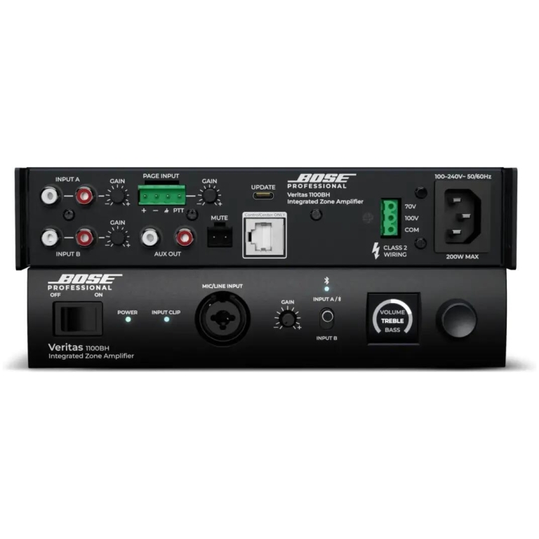 Amplificator 100V Bose Veritas 1100BH, seria Veritas, de la Bose Professional, asigură redarea de înaltă calitate a muzicii de fundal sau de prim-plan, paging-ului și conținutului multimedia în aplicații comerciale.