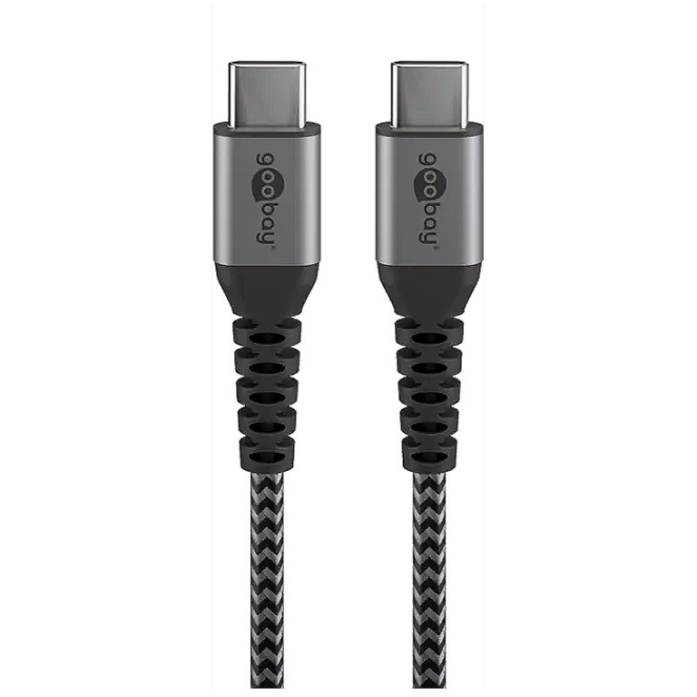 Cablu de date USB-C -USB-C Goobay, lungime 1.0m Cablul robust din țesătură cu conectori metalici asigură nu numai aspectul de înaltă calitate, ci și durabilitatea. Rezistență – o protecție optimizată la îndoire, conectorii metalici protejează împotriva ruperii cablurilor și asigură o rezistență optimă, chiar și în aplicații dificile. Rata de transfer de până la 10 Gbit / s.