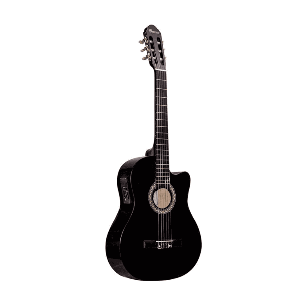 Chitara electro-clasica Mercury MEAN1 Bk, ideala pentru incepatori, echipata cu corzi mai moi, care te vor ajuta sa canti primele acorduri. MEAN1 are un design cu cutaway.