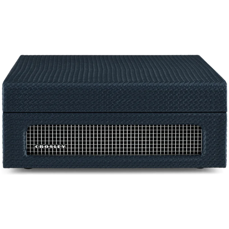 Crosley Voyager CR8017B-NY4 NAVY, pick-up cu Bluetooth, design de servieta, cu grilaj elegant in fața, două difuzoare situate în spate cu putere de 5w fiecare.