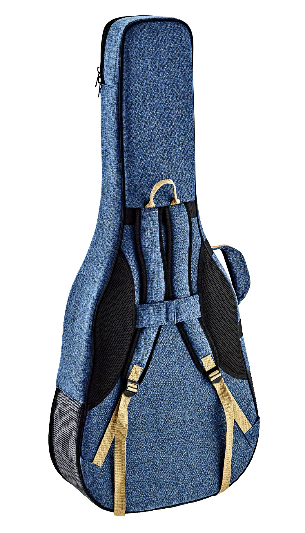 Protejează-ți chitara dreadnought cu această husă elegantă și rezistentă, proiectată pentru confort și siguranță în orice deplasare. În culoarea Ocean Albastru, combinația de cotton/canvas și inserții din piele intoarsă oferă un aspect premium, iar căptușeala interioară din catifea neagră păstrează finisajul instrumentului impecabil.
