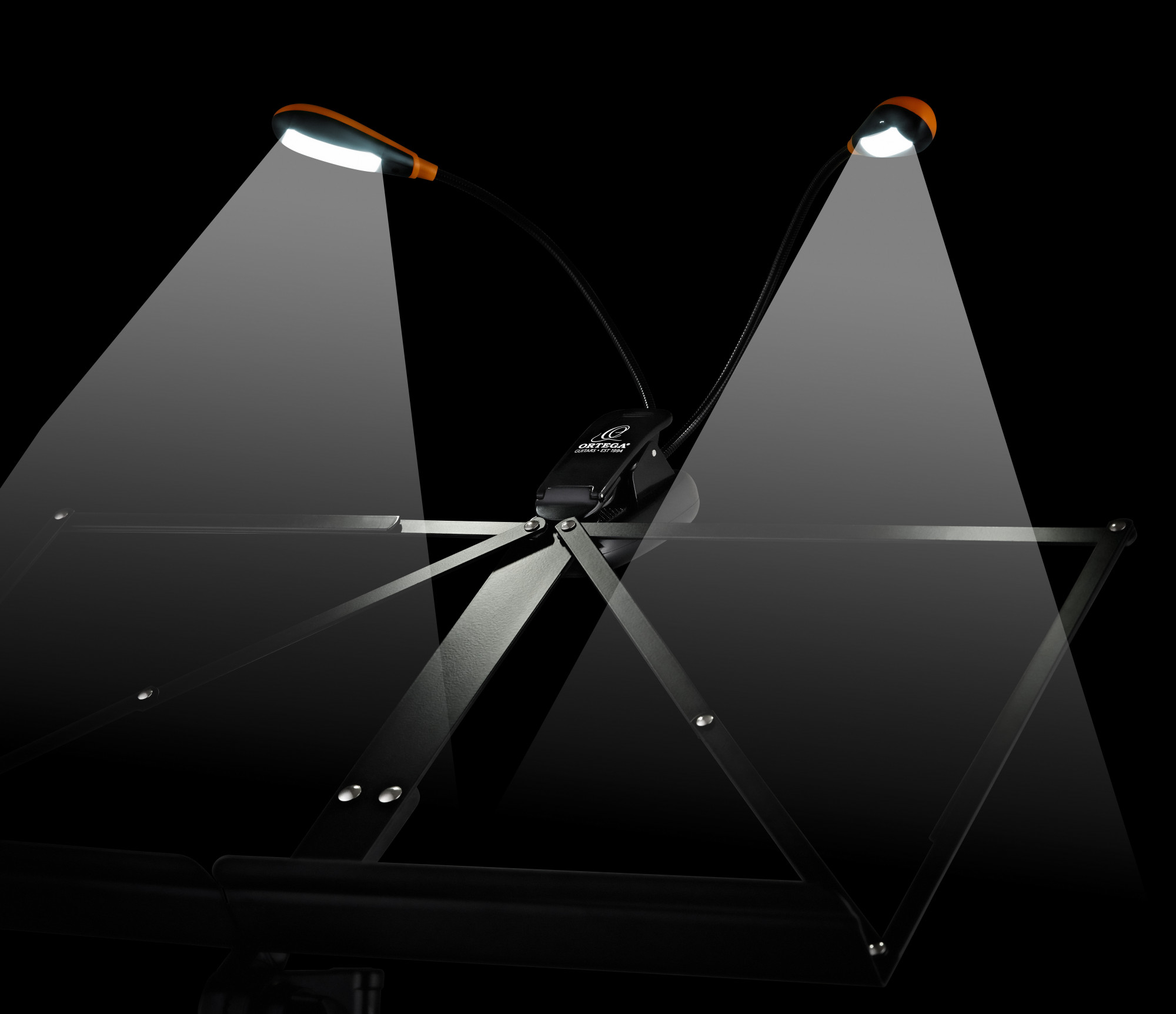 • Iluminare cu 4 LED-uri pe fiecare cap, oferind o lumină clară și uniformă asupra foii de partituri.