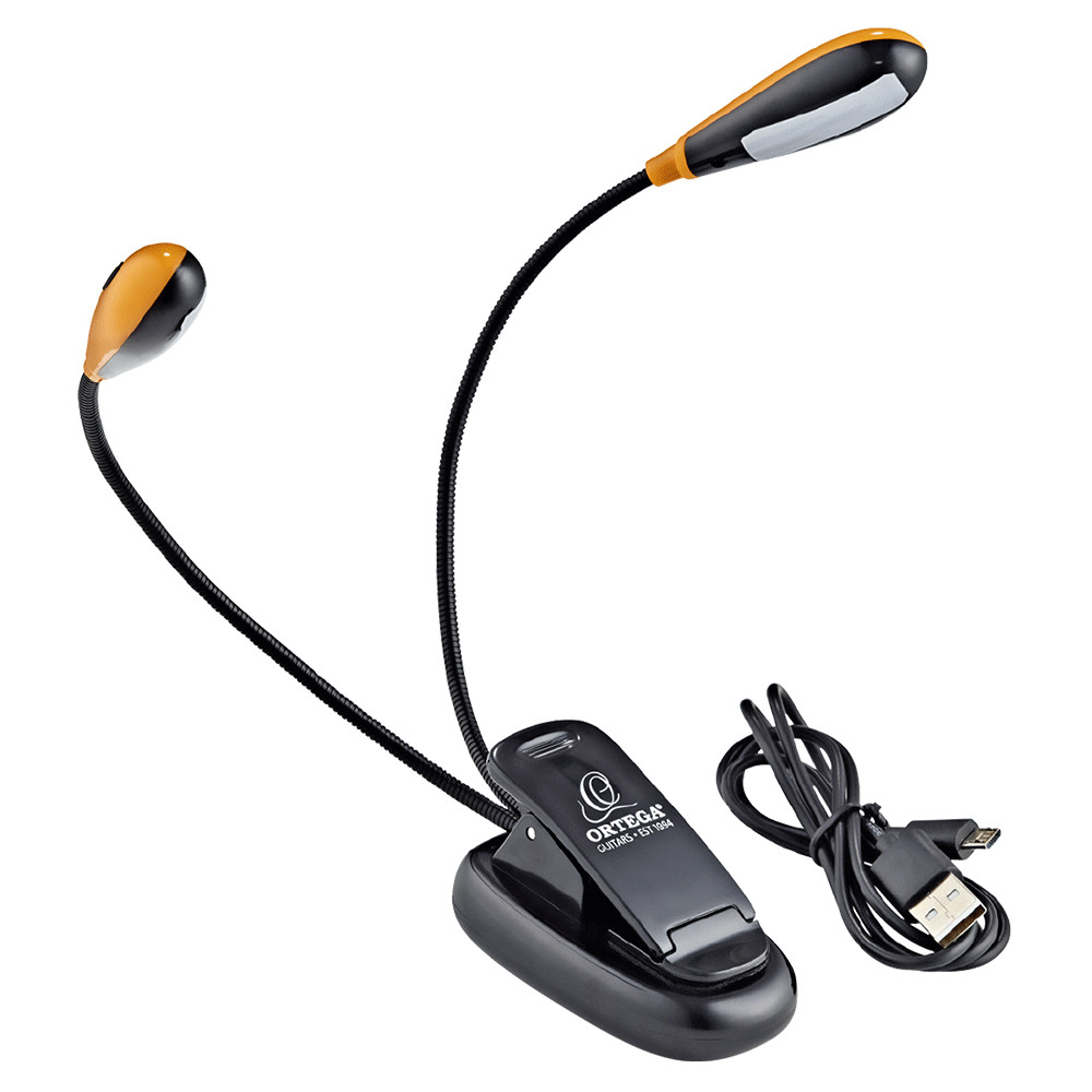 Lămpile pentru partituri Ortega sunt ideale pentru călătorii și se potrivesc perfect atât pe stativul de partituri, cât și pe birou. Se reîncarcă prin USB datorită bateriei integrate.