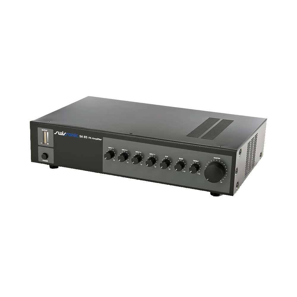 Pentru acest sistem am ales 10 boxe cu sistem de sustinere integrat si rezistente la intemperii (6 interior, 4 exterior), alimentate cu un amplificator si un mixer amplificat de linie 100V, cu 4 intrari pentru microfon/linie si 1 intrare pentru sursa audio externa (CD/DVD, etc).